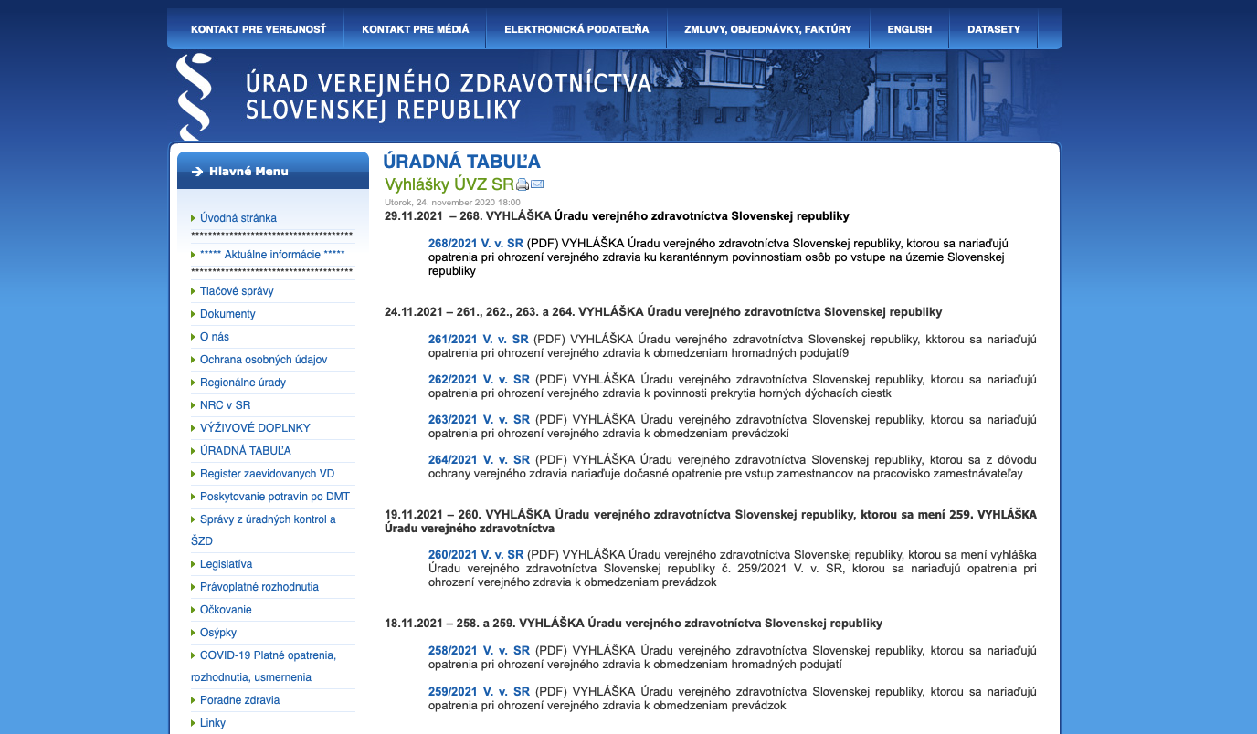 Úrad verejného zdravotníctva vydal 18.11.2021 Vyhlášku č. 259 ktorou sa nariaďujú opatrenia pri …