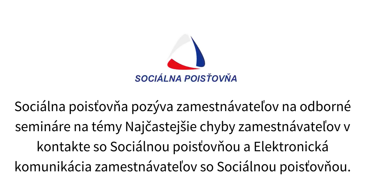 Sociálna poisťovňa pozýva zamestnávateľov na odborné semináre na témy Najčastejšie chyby zamestnávateľov v …